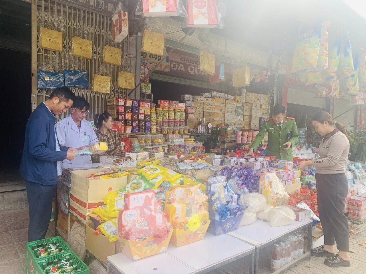 Nội dung kiểm tra tập trung vào việc chấp hành các quy định của pháp luật về kinh doanh hàng hóa, giá cả, nguồn gốc xuất xứ, phòng chống buôn lậu, gian lận thương mại, hàng giả và công tác bảo đảm an toàn thực phẩm, đặc biệt đối với các mặt hàng phục vụ Tết và lễ hội.