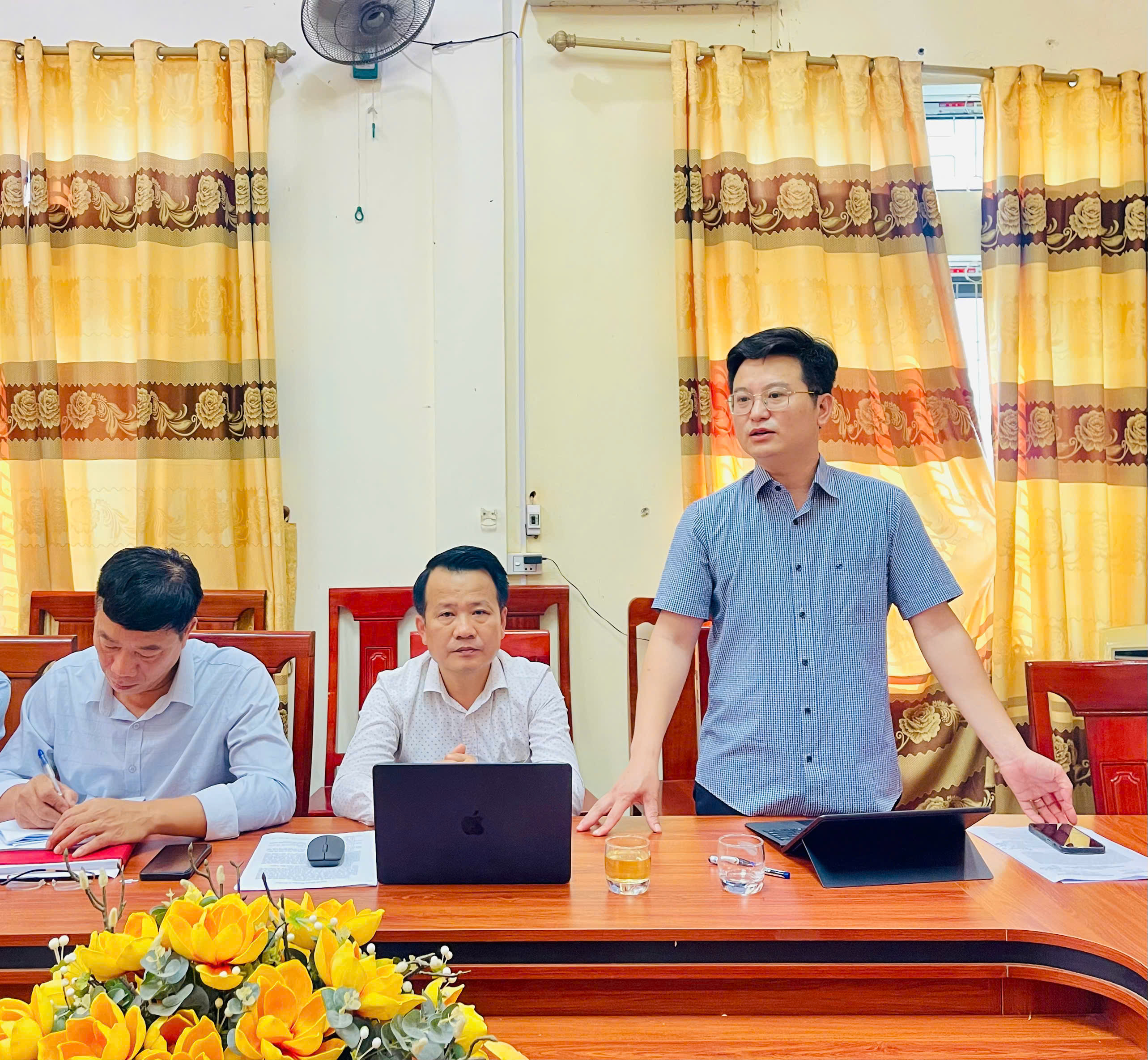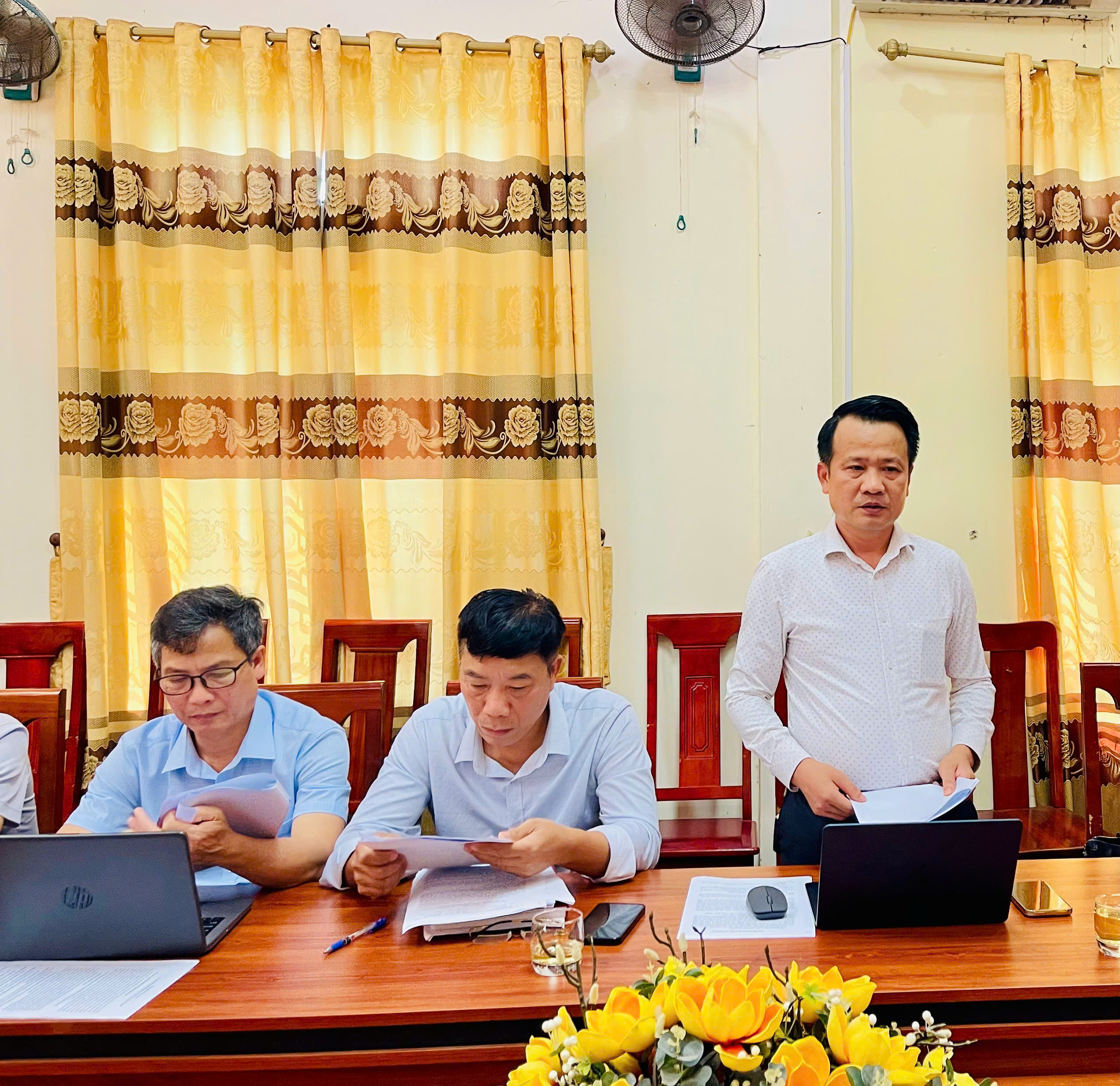 Đồng chí Phạm Hoài An - PBT Đảng uỷ, Chủ tịch UBND xã chủ trì hội nghị