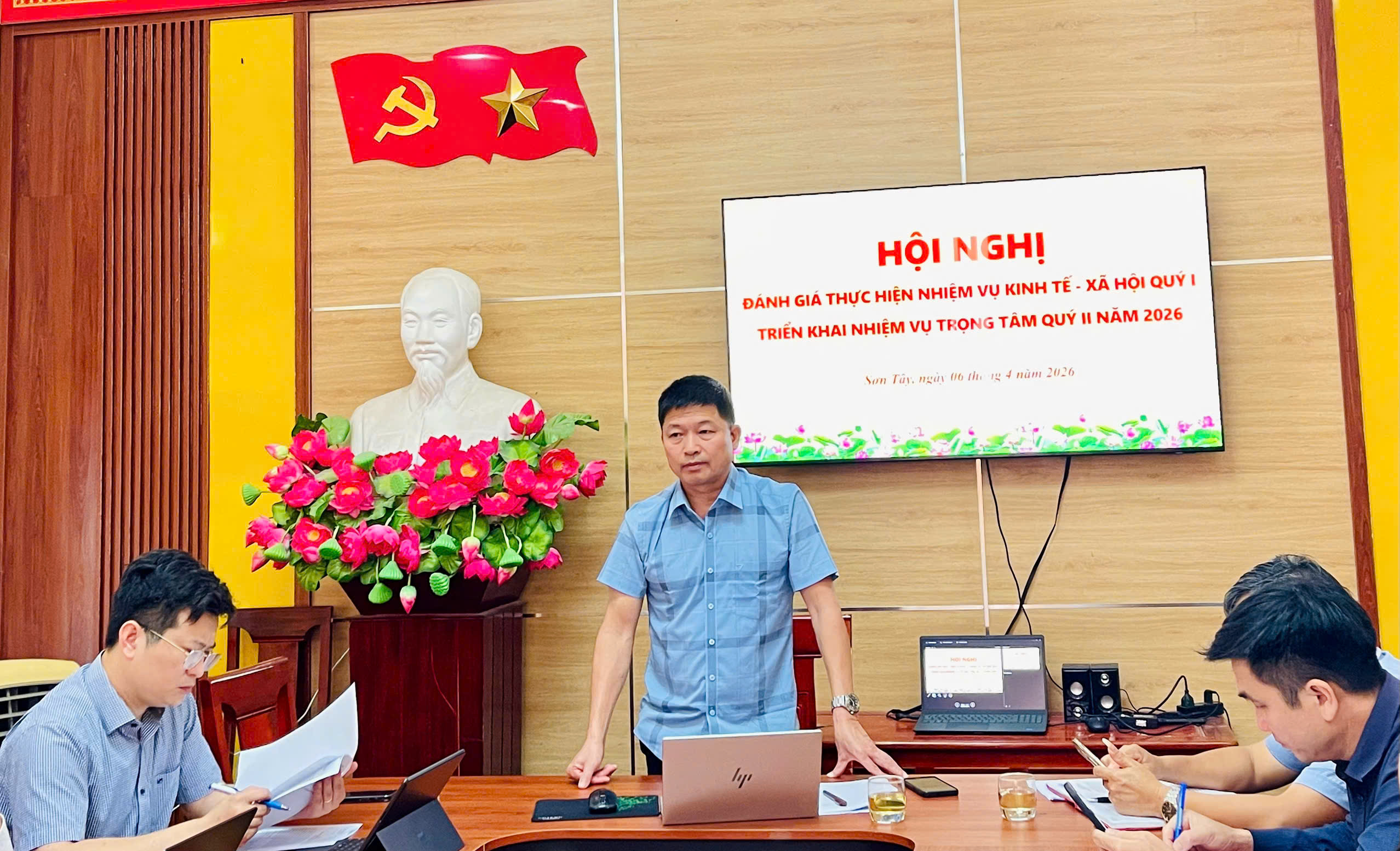 Thực hiện chương trình công tác tháng 4, chiều ngày 6/4, UBND xã Sơn Tây tổ chức Hội nghị đánh giá thực hiện nhiệm vụ kinh tế - xã hội quý 1; triển khai nhiệm vụ trọng tâm quý 2 năm 2026. Đồng chí Phạm Hoài An - PBT Đảng uỷ, Chủ tịch UBND xã chủ trì hội nghị.
